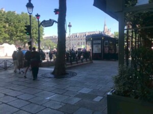 バスでシャトレ駅で降り、セーヌ川を渡ると左手に見えるのはコンシェルジェリー。