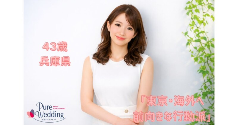 落ち着いた雰囲気がありつつ、実際にお話しするととても気さくで、どこか可愛らしさも感じられる**43歳女性(現在は兵庫県在住)**です。